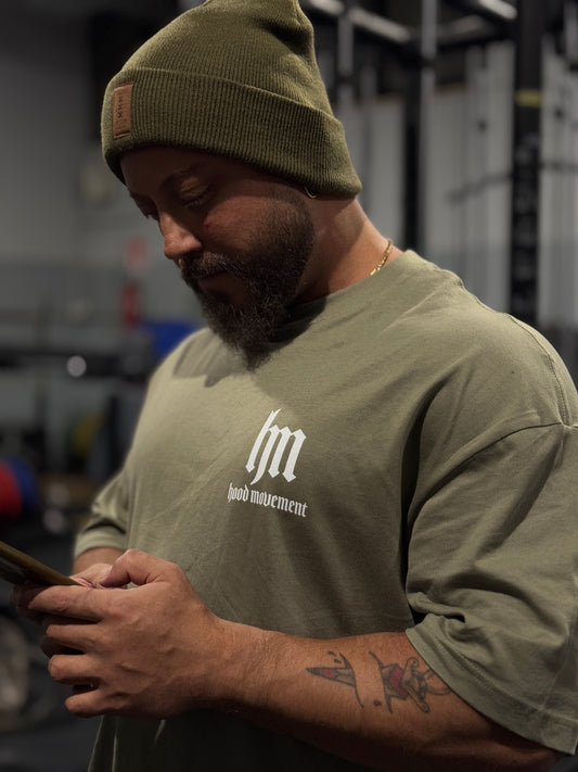 HM "POWERLIFTING" BACK COVER - MILITARY GREEN OVERSIZED T-SHIRT