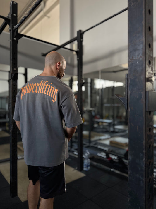HM "POWERLIFTING" BACK COVER - GRAFITE GRAY OVERSIZED T-SHIRT